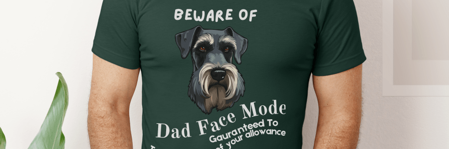 Introducing our hilarious Beware of Dad Face Mode funny dad t-shirt! This unique design features the adorable face of a miniature schnauzer or snokie with the hilarious warning slogan beware of dad face mode guaranteed to take a bite out of your allowance. Perfect for dog-loving dads with a great sense of humor, this t-shirt… Read More Beware of Dad Face Mode